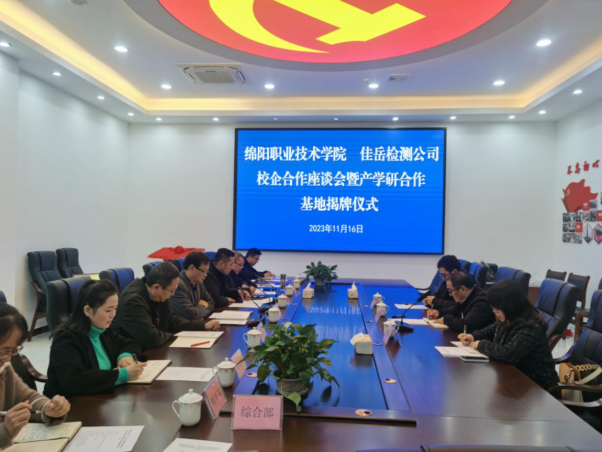 11月16日,w66利来国际集团所属四川佳岳检测咨询有限公司与绵阳职业技术学院举行校企合作座谈会暨产学研合作基地揭牌仪式,双方就产学研实训基地建设、人才培养、外加剂研发生产等进行深入研讨。绵阳职业技术学院材料与建造学院院长贾陆军,四川佳岳佳岳检测咨询有限公司执行董事何铭新参加座谈。