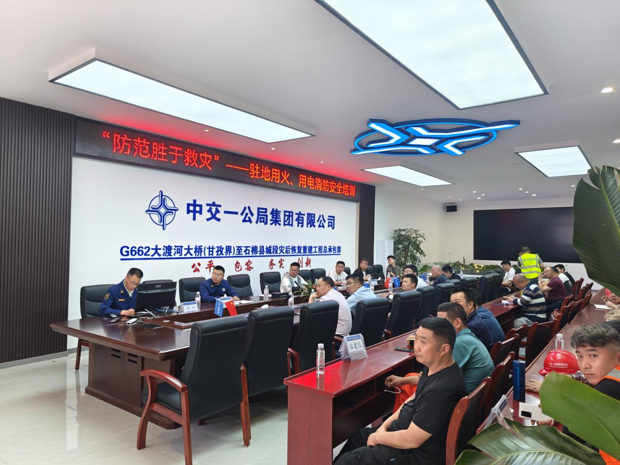 在项目驻地,第一时间召开了消防安全知识培训。随后,由石棉县消防救援队队长进行消防器材演示并讲解了消防安全基础知识、各类消防设施使用方法。最后,组织参训人员进行灭火及逃生演练。