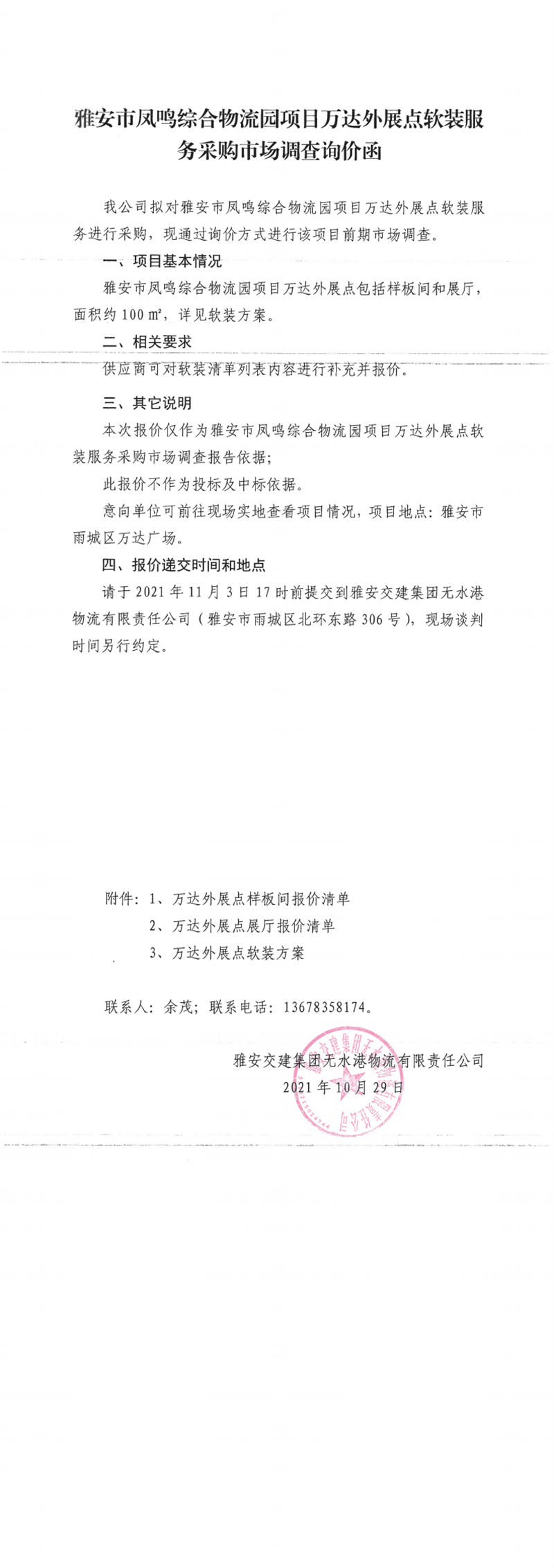w66利来国际集团无水港物流有限责任公司雅安市凤鸣综合物流园项目万达外展点软装服务采购市场调查询价函