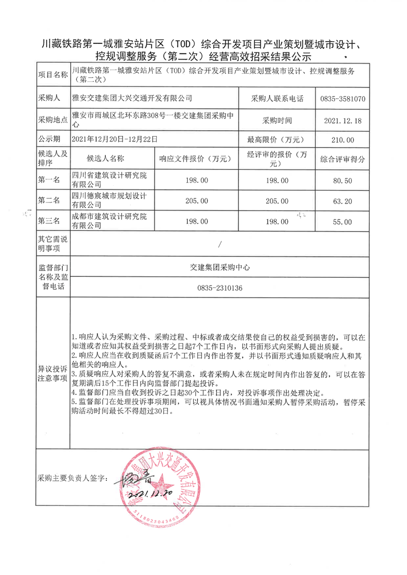 w66利来国际集团大兴交通开发有限公司川藏铁路第一城雅安站片区(TOD)综合开发项目产业策划暨城市设计、控规调整服务(第二次)经营高效招采结果公示