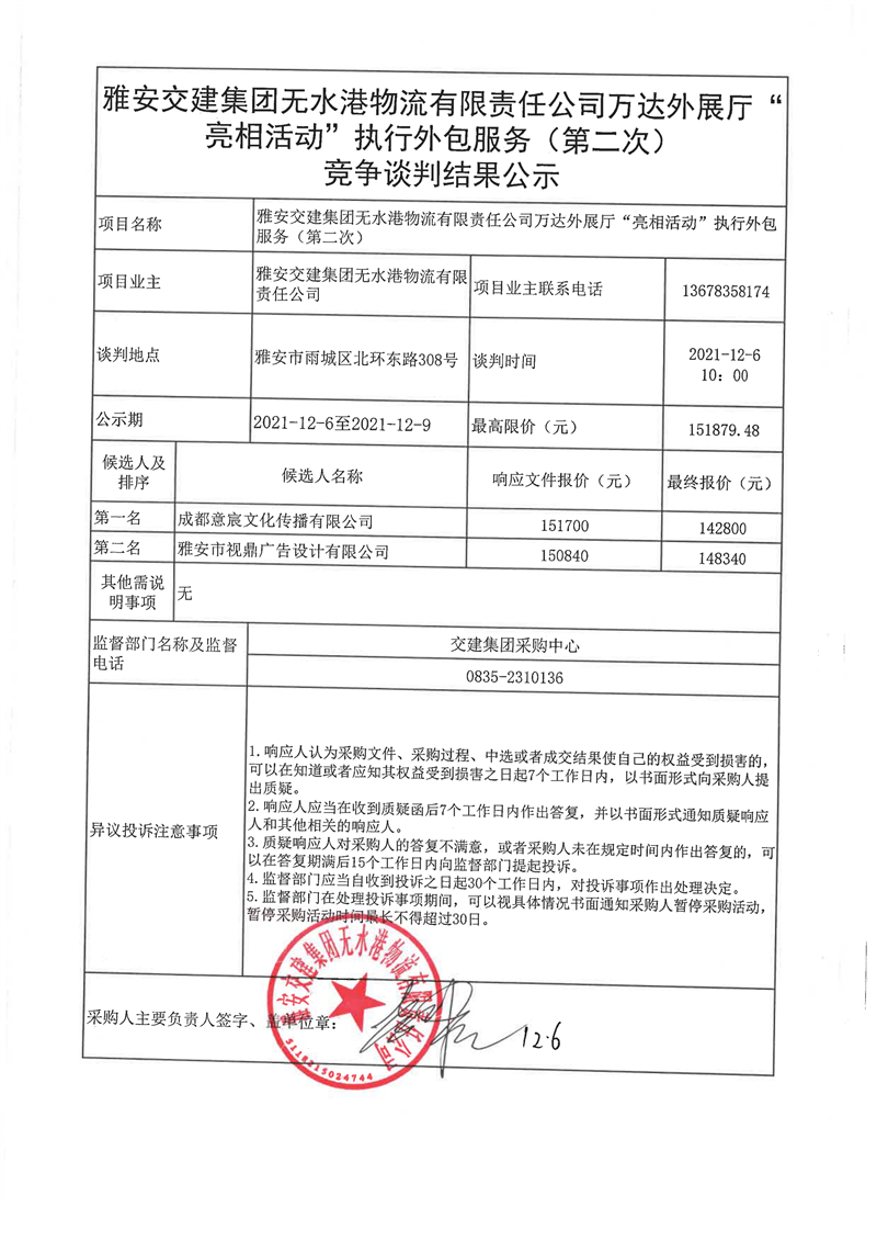 w66利来国际集团无水港物流有限责任公司万达外展厅“亮相活动”执行外包服务(第二次)竞争谈判结果公示