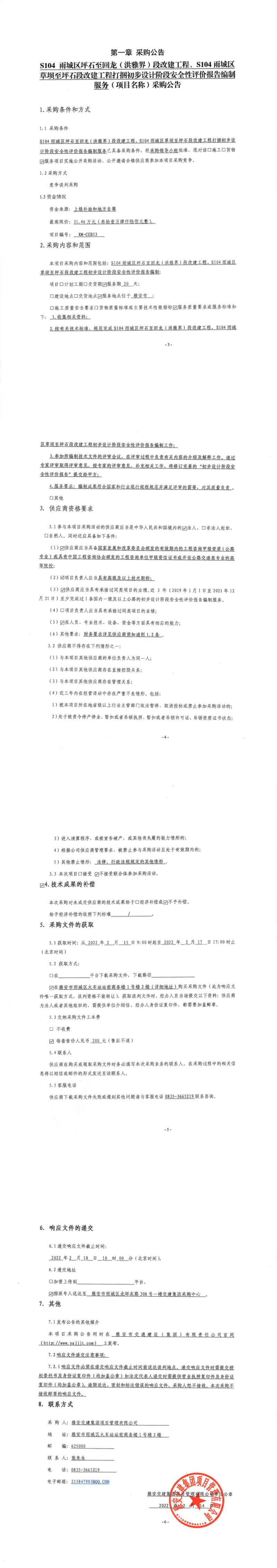 w66利来国际集团项目管理有限公司S104雨城区坪石至回龙(洪雅界)段改建工程、S104雨城区草坝至坪石段改建工程打捆初步设计阶段安全性评价报告编制服务采购公告