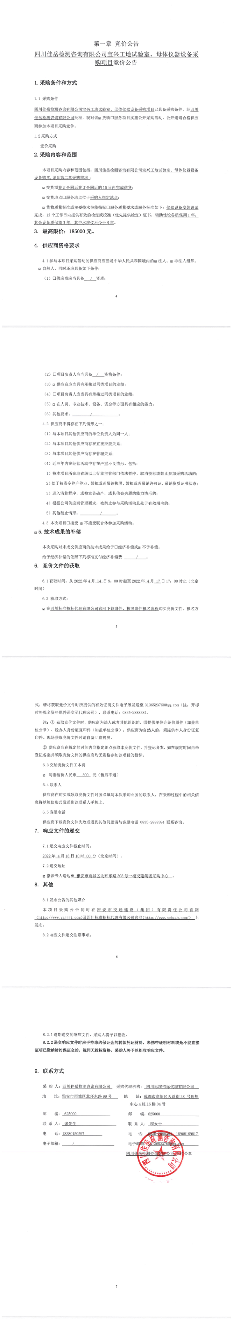 四川佳岳检测咨询有限公司宝兴工地试验室、母体仪器设备采购项目竞价公告