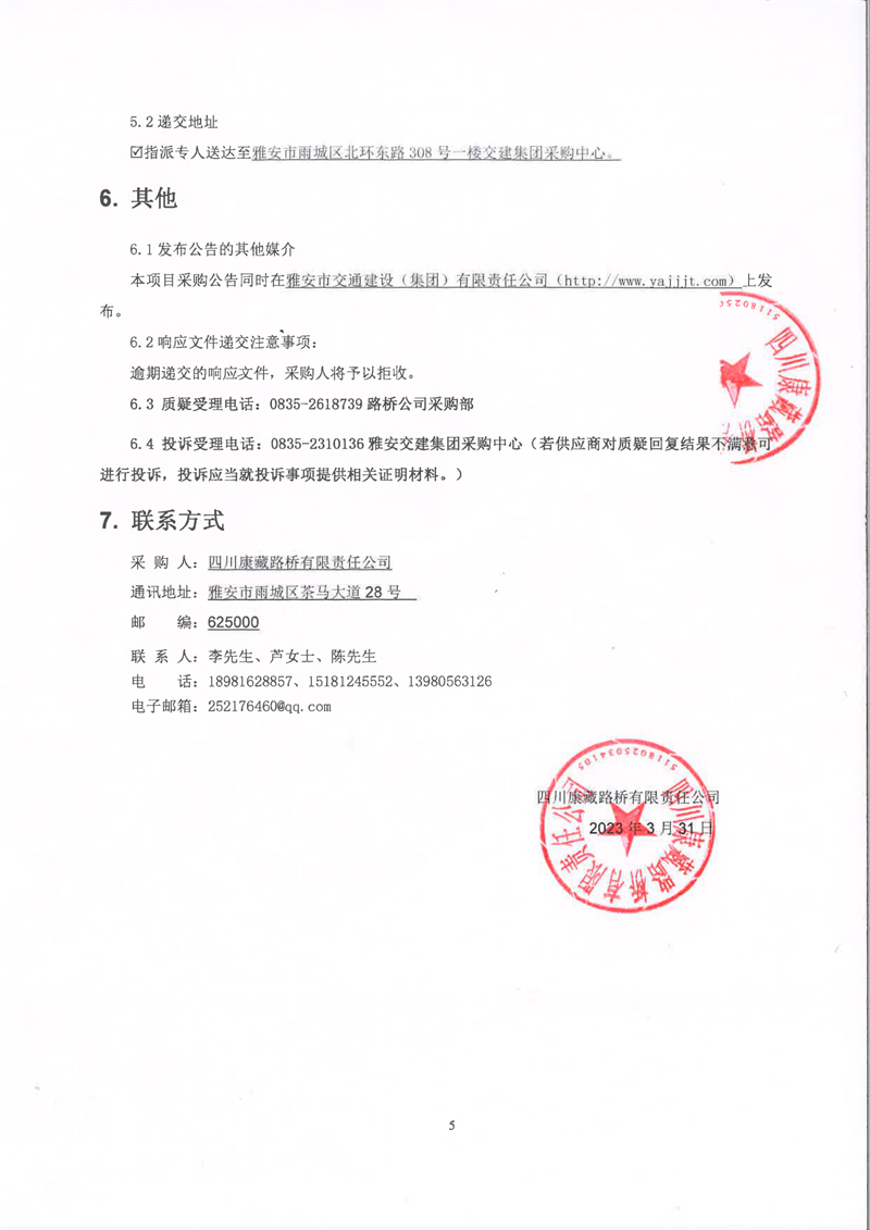 四川康藏路桥有限责任公司省道104雨城区坪石至回龙(洪雅界)段改建工程项目支座及伸缩缝采购结果公示