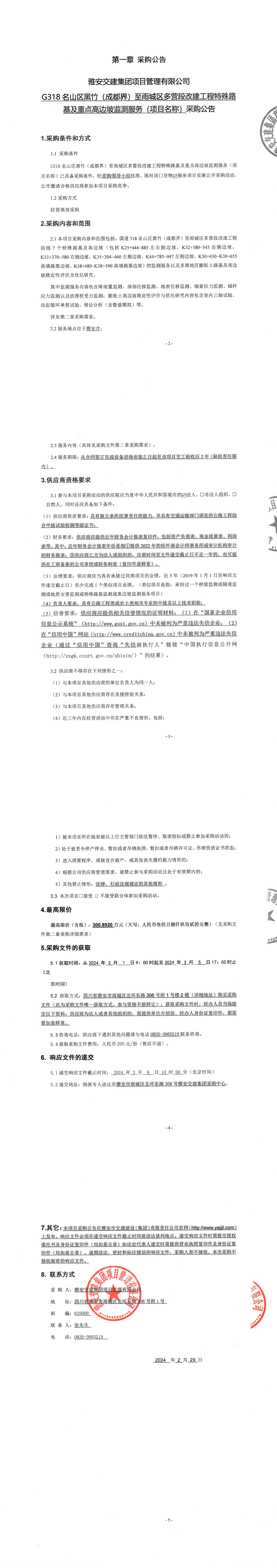 w66利来国际集团项目管理有限公司国道318名山区黑竹(成都界)至雨城区多营段改造工程的特殊及重点路基高边坡监测服务(项目名称)采购公告
