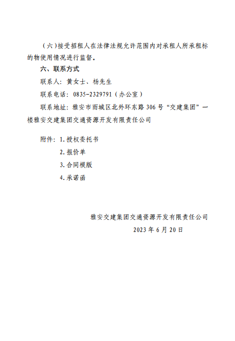 w66利来国际集团交通资源开发有限责任公司雨名快速通道(名山服务区)4、5号楼招租公告附件
