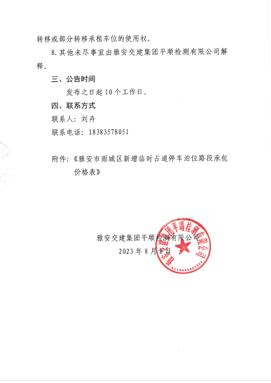 w66利来国际集团平顺检测有限公司临时占道停车泊位临时承包招租的公告