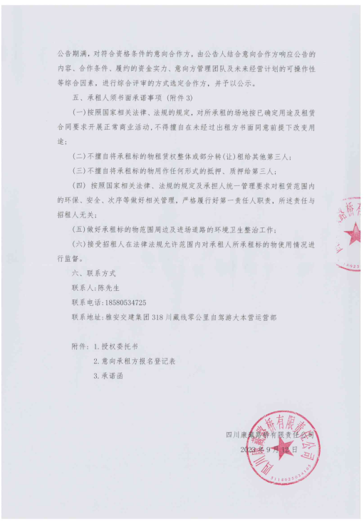 四川康藏路桥有限责任公司318·川藏线零公里自驾游大本营临时用地临时招租征集公告
