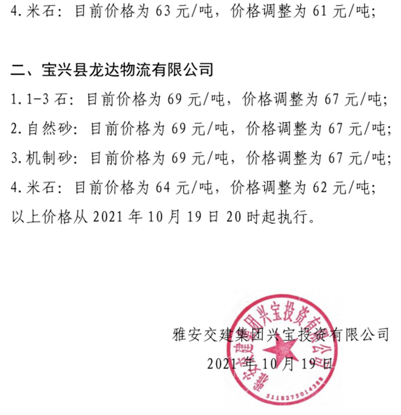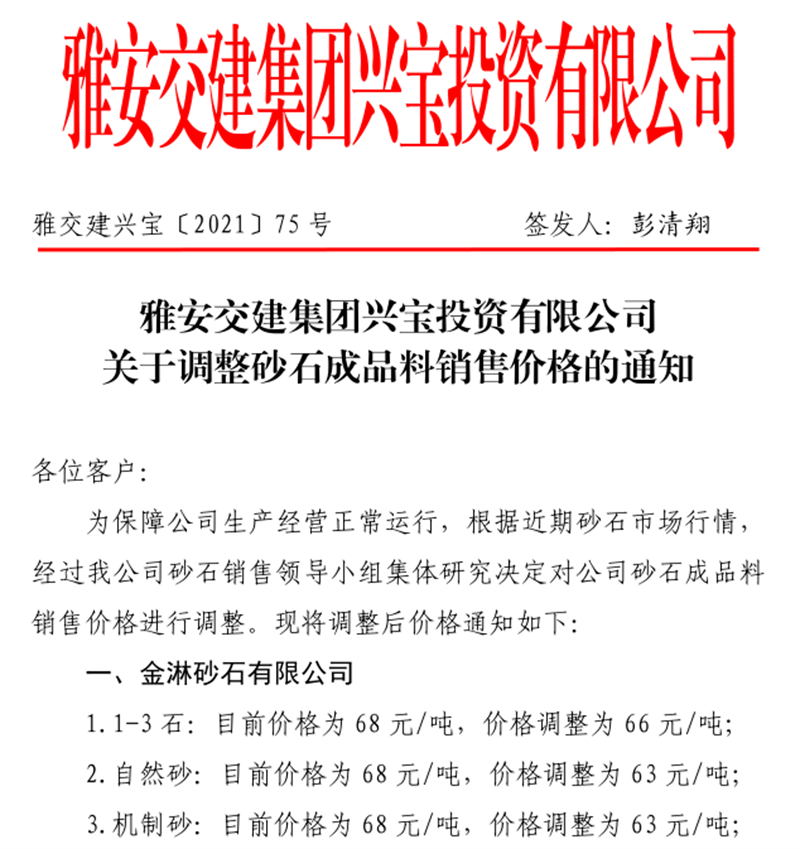 w66利来国际集团云石公司关于调整成品料销售价格的通知(2021.11.4)