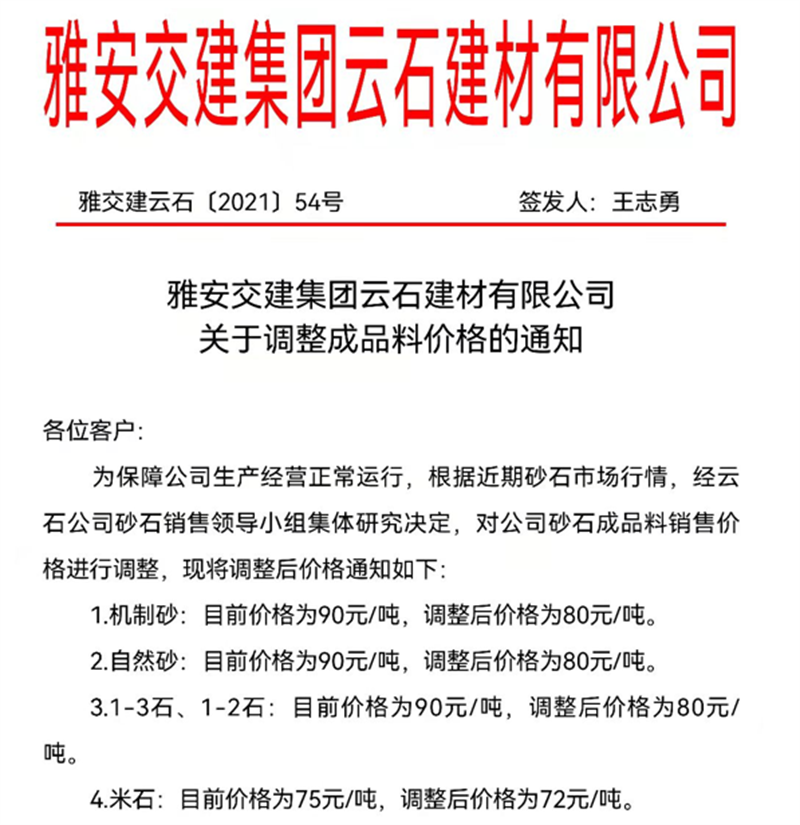 w66利来国际集团云石公司关于调整成品料销售价格的通知(2021.10.17)