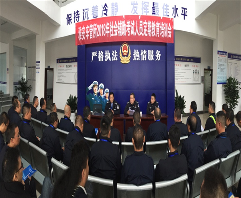 教导员何小浩在培训会上强调:一是要严格遵守机动车驾驶人考场规定,按照省总队及车管所相关要求,遵守考场纪律,规范考场秩序,同时车管所将进一步加强对考场工作的监管。二是考场要把提高学员满意度作为工作动力,做到 “耐心”、“耐性”,真正树立“一切出发点都为了学员”的大服务意识。望全体辅助考试员将此次培训内容认真贯穿到实际考试工作中,提升考场服务水平与质量,为广大考生给予优质服务,让广大学员满意,树立良好的考场形象。