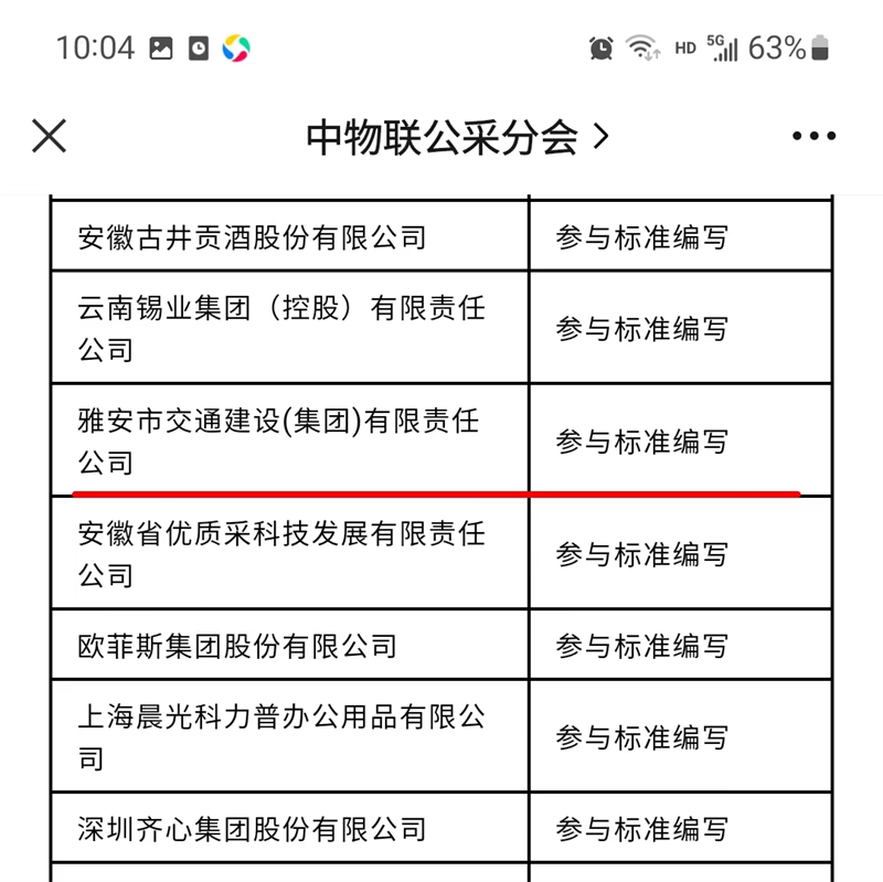 4月20日,由中国物流与采购联合会批准立项,中国物流与采购联合会公共采购分会牵头编制,中国物流与采购联合会团体标准化技术委员会归口的团体标准《国有企业采购操作规范》正式发布,雅安市交通(建设)集团有限公司是本次团体标准起草组成员单位中全国唯一一家地级市属国有企业平台公司。