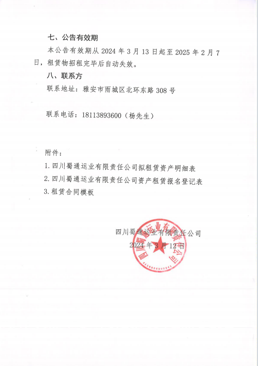 四川蜀通运业有限责任公司关于对外租赁部分门面、办公室资产的公告附件