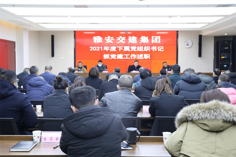 1月25日,雅安市交建集团召开2021年度党组织书记抓党建工作述职评议会。集团党委书记、董事长漆家华同志主持会议,集团领导班子成员、各子公司党组织书记和主要负责人、机关各部门负责人参会。