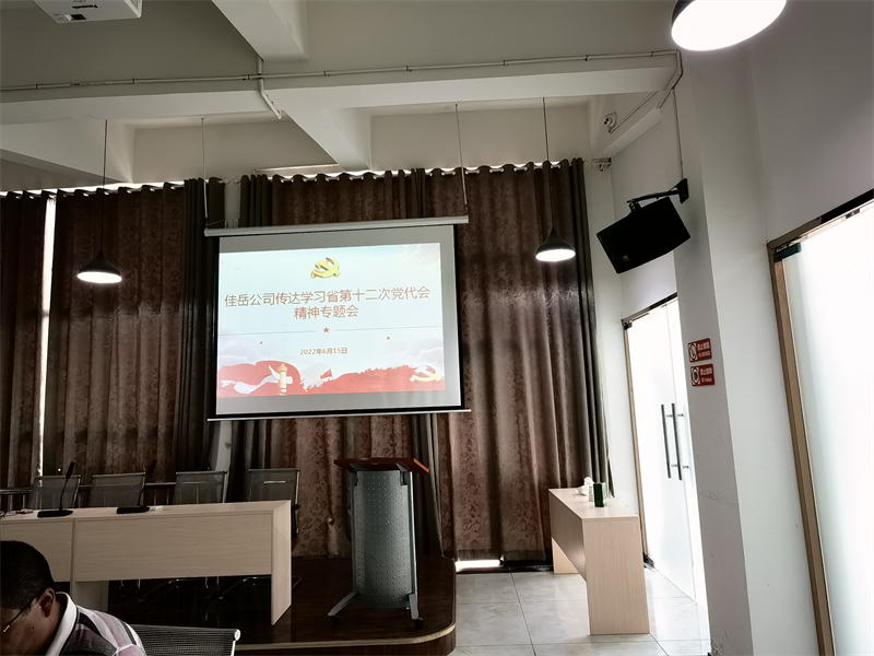 6月14日,佳岳公司3楼会议室召开省第十二次党代会精神专题学习会,公司班子成员、中层干部、党员及入党持续分子参加。