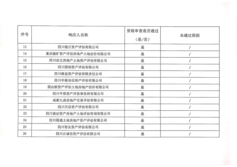 雅安交通建设(集团)有限责任公司资产评估服务企业入库比选结果