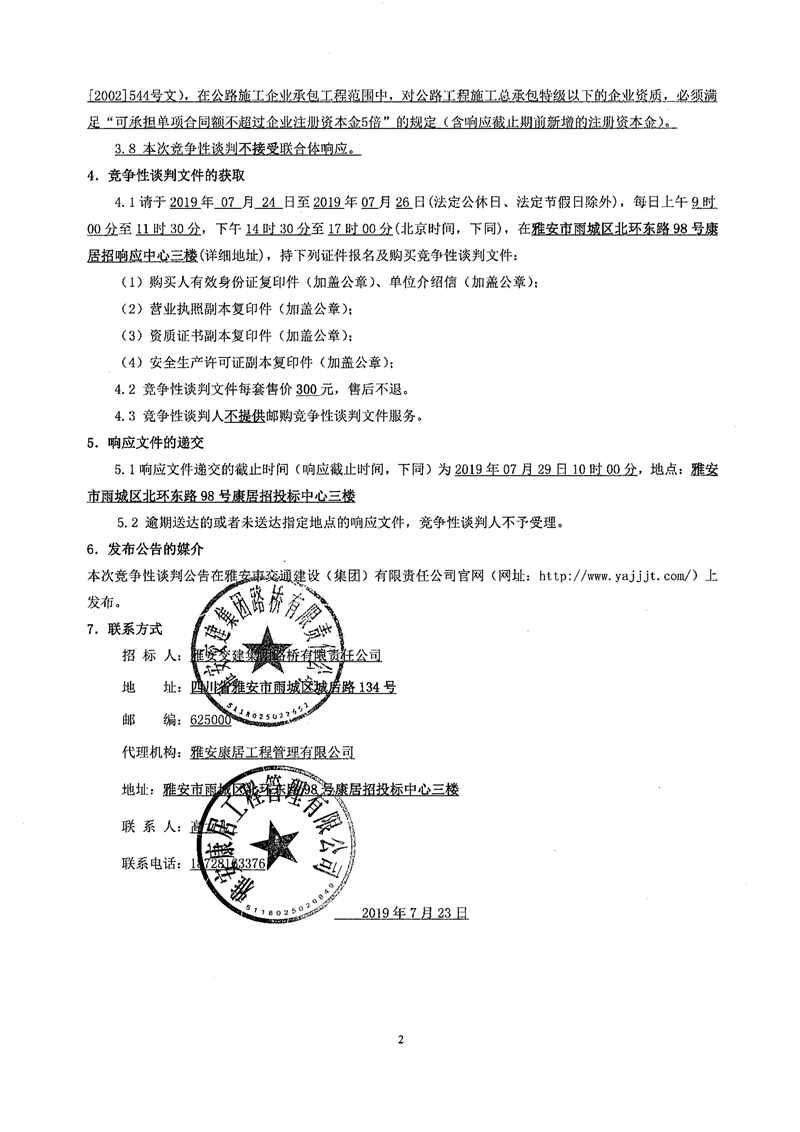 w66利来国际集团路桥有限责任公司国道351线硗碛至夹金山段路面改造工程交通安全设施施工项目竞争性谈判公告