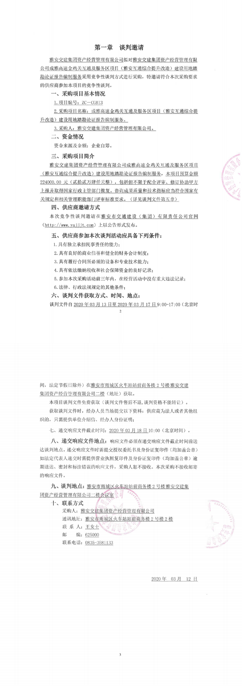 w66利来国际集团资产经营管理有限公司成雅高速金鸡关互通及服务区项目(雅安互通综合提升改造)建设用地踏勘论证报告编制服务竞争性谈判公告