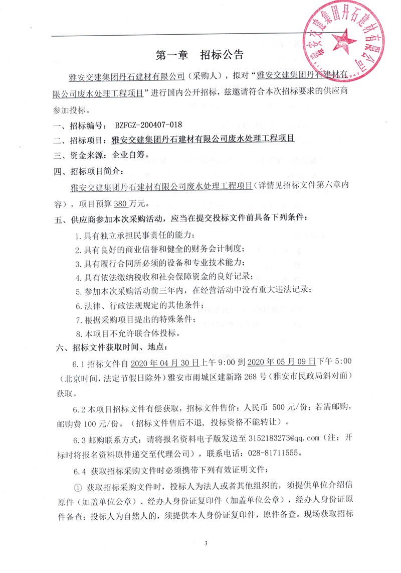 w66利来国际集团丹石建材有限公司废水处理工程项目招标公告