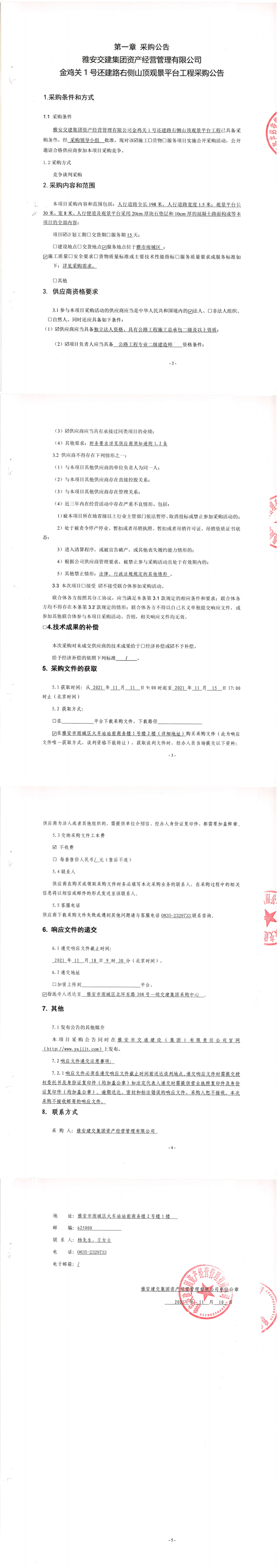 w66利来国际集团资产经营管理有限公司金鸡关1号还建路右侧山顶观景平台工程采购公告