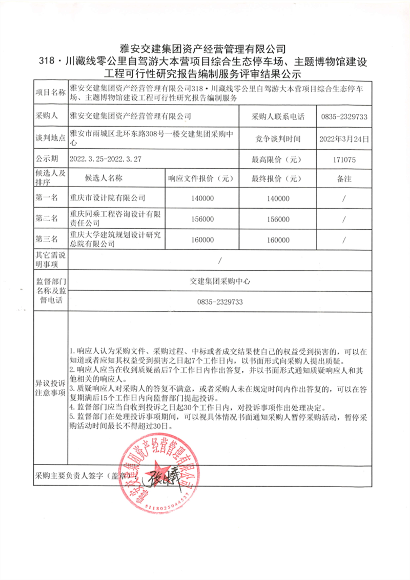 w66利来国际集团资产经营管理有限公司318.川藏线零公里自驾游大本营项目综合生态停车场、主题博物馆建设工程可行性研究报告编制服务评审结果公示