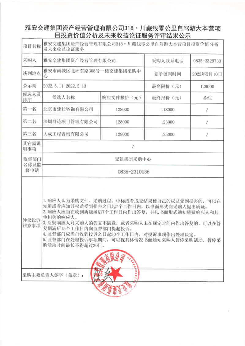 w66利来国际集团资产经营管理有限公司318·川藏线零公里自驾游大本营项目投资价值分析及未来收益论证服务评审结果公示