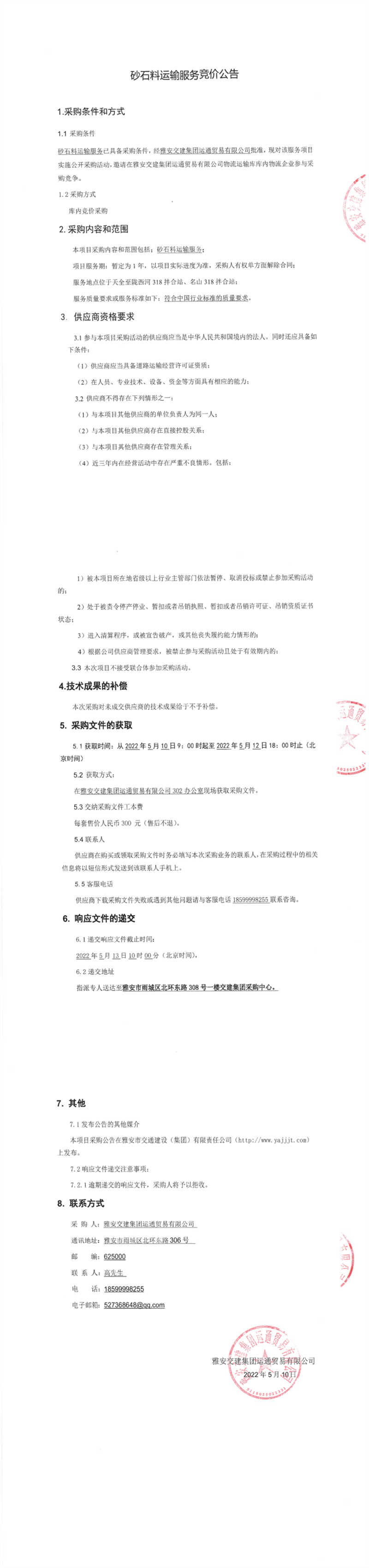 w66利来国际集团运通贸易有限公司芦山芦太路成品料运输服务竞价公告(第三次)