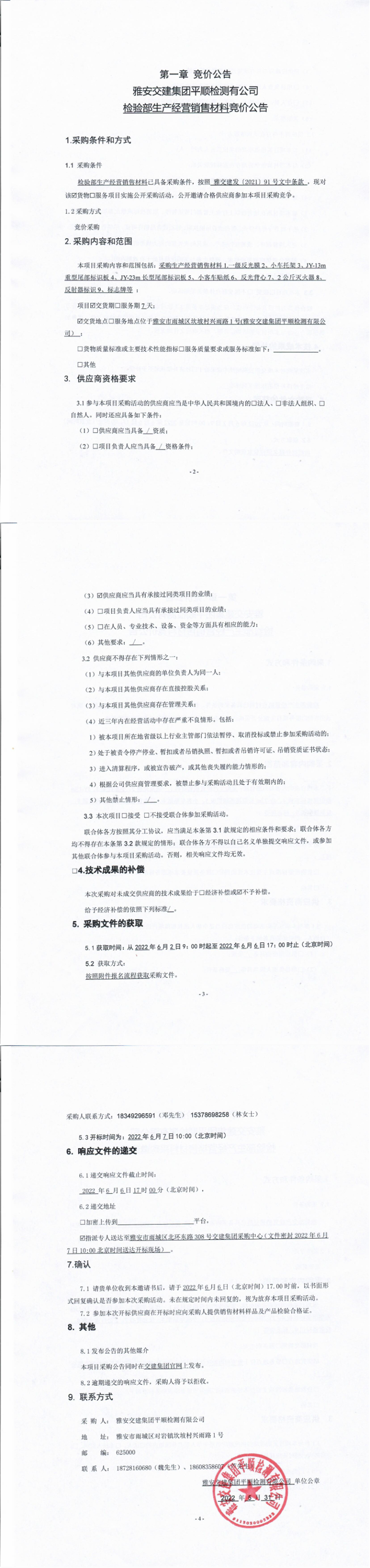 w66利来国际集团平顺检测有限公司检验部生产经营销售材料竞价公告