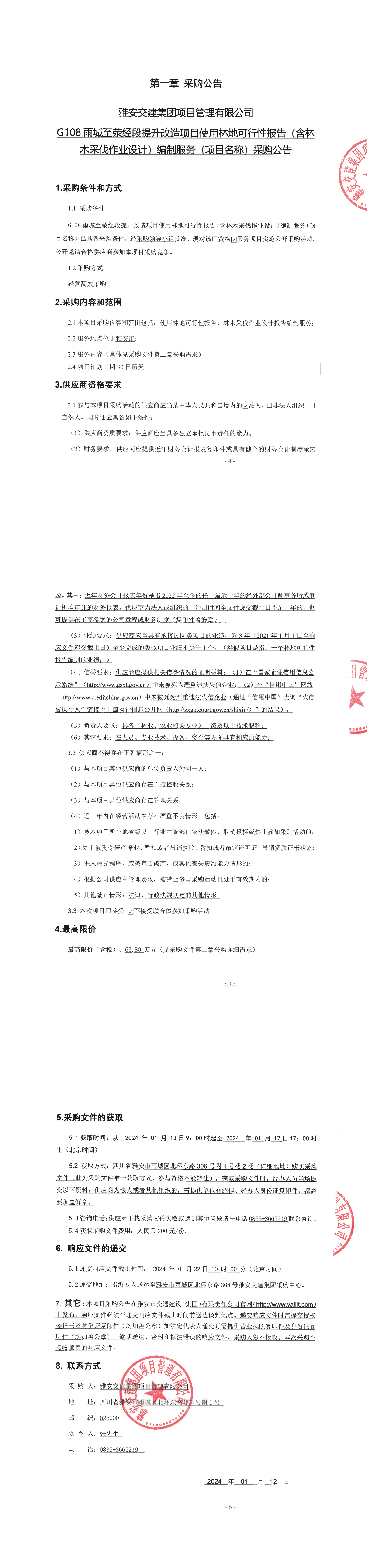 w66利来国际集团项目管理有限公司G108雨城至荥经段提升改造项目使用林地可行性报告(含林木采伐作业设计)编制服务(项目名称)采购公告