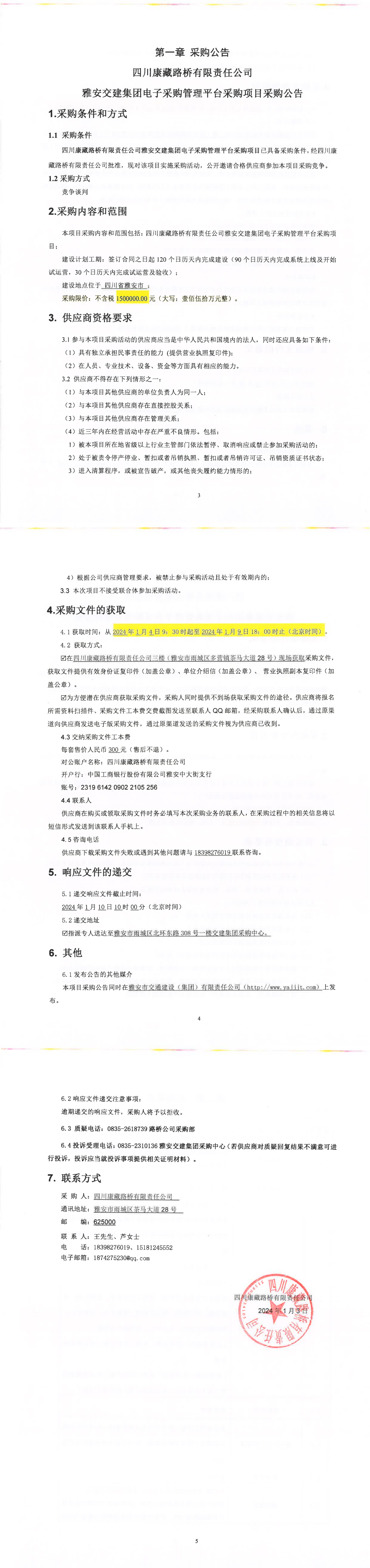四川康藏路桥有限责任公司w66利来国际集团电子采购管理平台采购项目采购公告