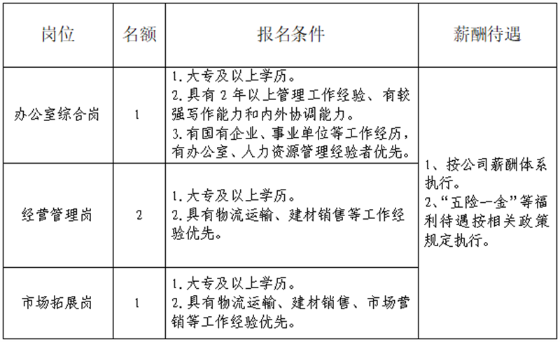 w66利来国际集团运通贸易有限公司是雅安市交通建设(集团)有限责任公司下属子公司。主要从事普通货运、建材销售、供应链管理、货运代理、货运信息咨询服务、仓储配送服务等工作。现根据公司业务开展需要,决定招聘4名工作人员,现将有关事项公告如下: