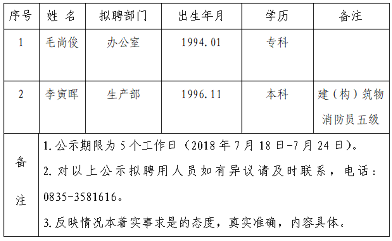 w66利来国际集团兴宝投资有限公司拟聘用人员公示