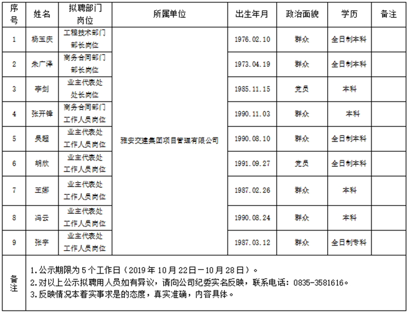 w66利来国际集团项目管理有限公司拟聘用人员公示(项目管理公司)