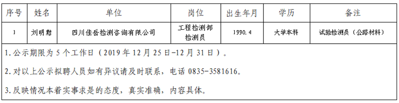 w66利来国际集团子公司拟聘用人员公示(佳岳公司)