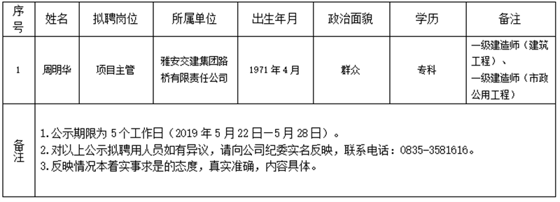 w66利来国际集团子公司拟聘用人员公示(路桥公司)