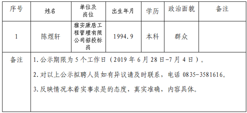 w66利来国际集团子公司拟聘用人员公示 (康居公司)