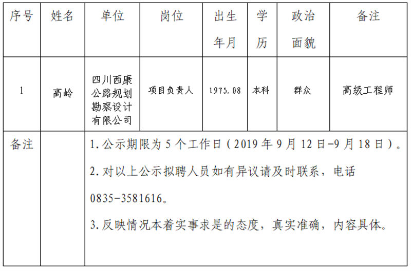四川康藏路桥有限责任公司关于公开招聘省道104线草坝至姚桥段改建项目部工作人员的公告