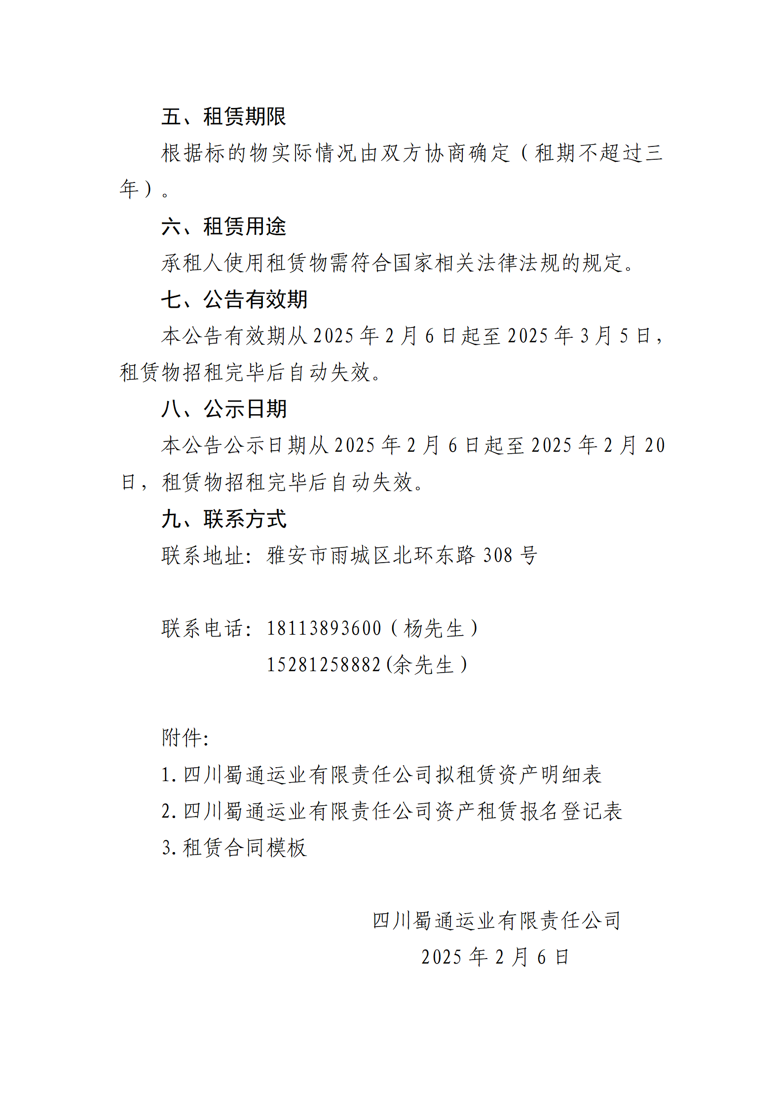 四川蜀通运业有限责任公司 关于宝兴县穆坪南街16号、18号两间门面进行二次挂网招租的公告