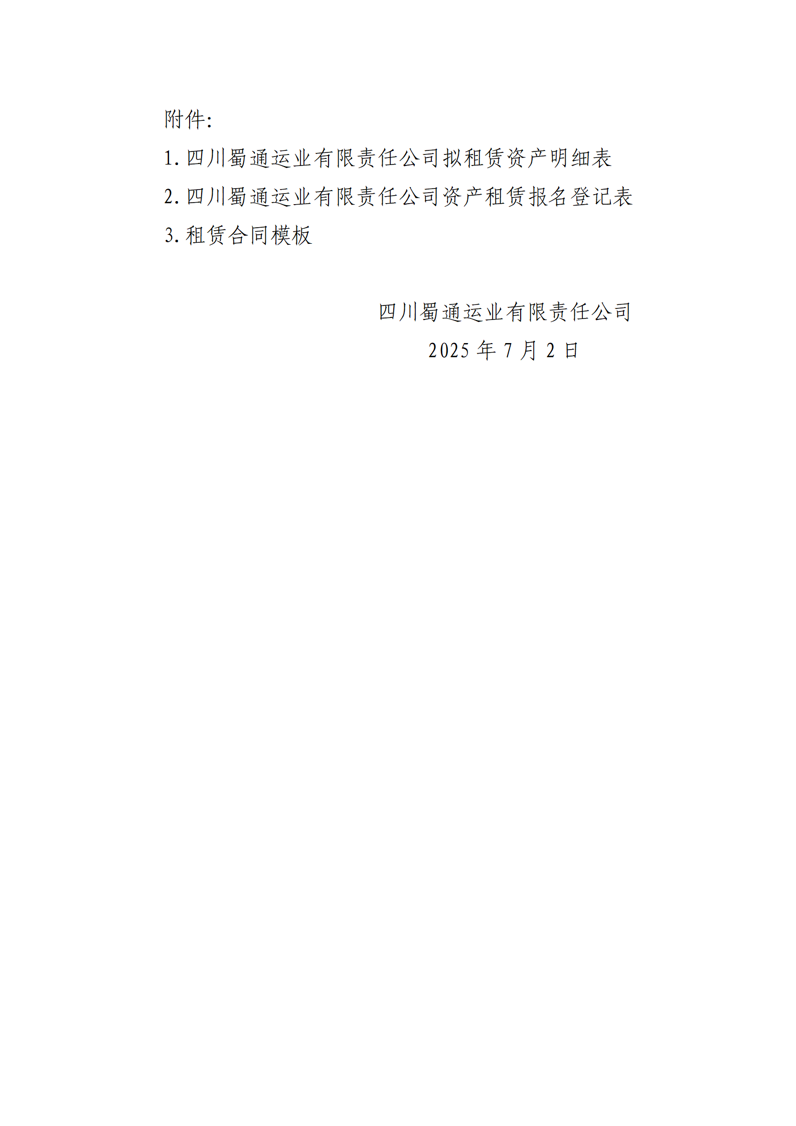 四川蜀通运业有限责任公司 关于康藏路61号附1号门面、康藏路85号场地两处资产进行挂网招租的公告