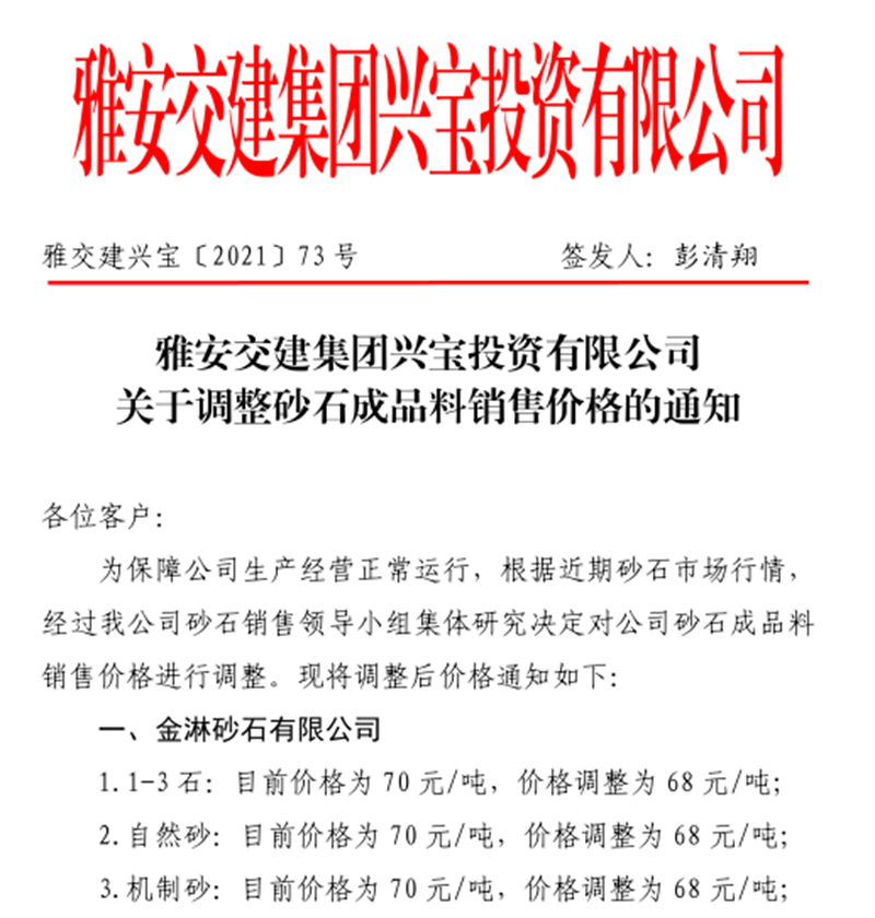 w66利来国际集团云石公司关于调整成品料销售价格的通知(2021.11.4)