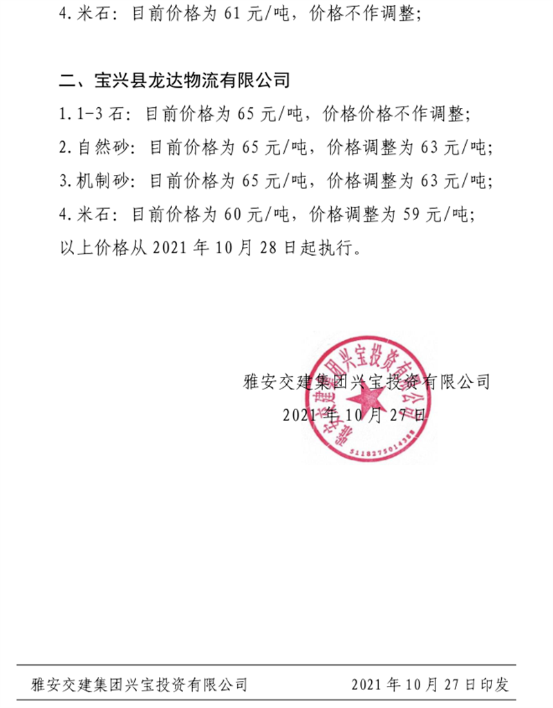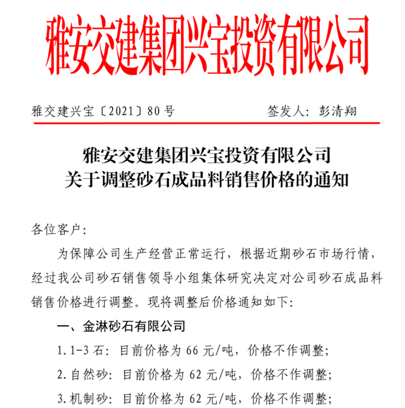 w66利来国际集团云石公司关于调整成品料销售价格的通知(2021.11.4)