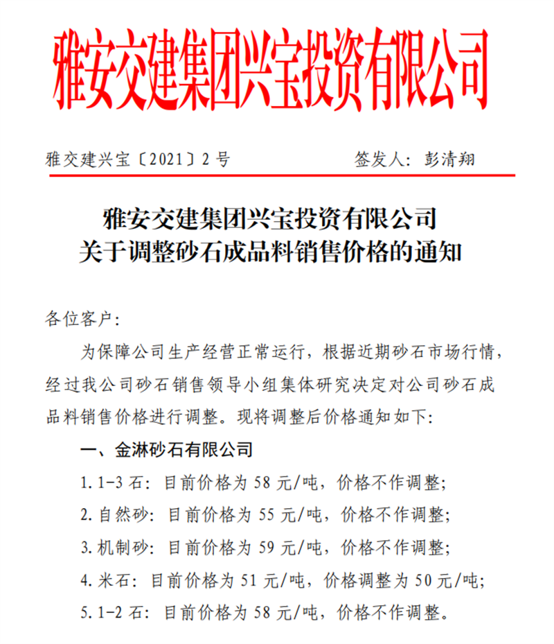 w66利来国际集团兴宝公司砂石骨料销售价格情况表(2021.1.14)