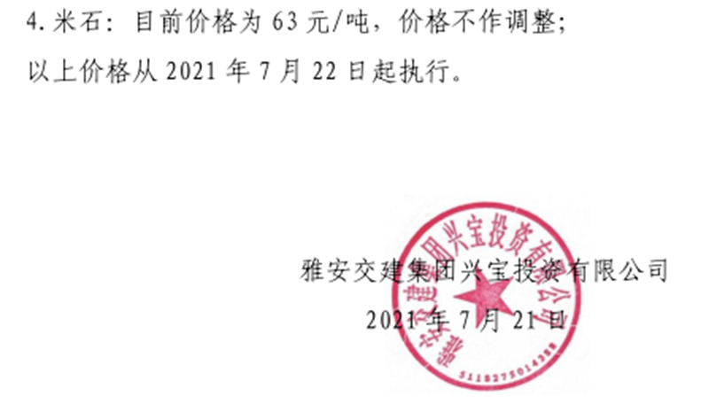 w66利来国际集团兴宝公司砂石骨料销售价格情况表(2021.7.22)