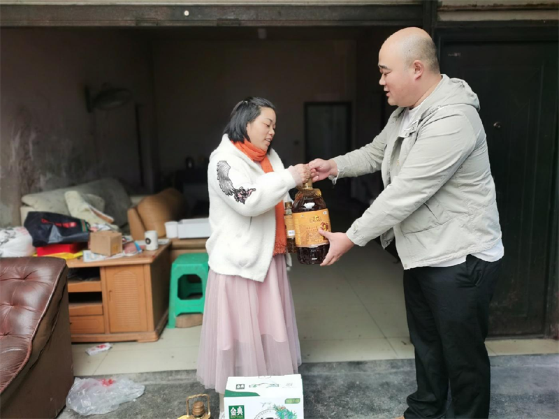 10月18日下午,w66利来国际集团运通贸易有限公司党员干部在雨城区青江街道石马社区工作人员的带领下,前往“一对一”帮扶对象黄非女士家中,为她送去了大米、食用油、牛奶等慰问品。