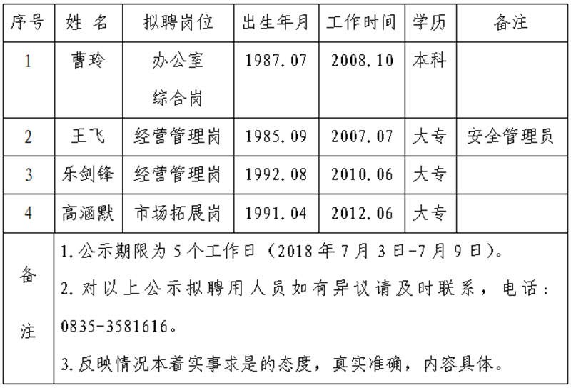 顺利获得公开报名、资格审查、面试等程序,经公司研究确定以下
