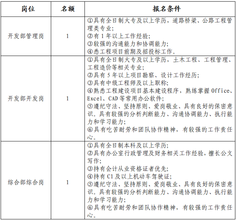 w66利来国际集团大兴交通开发有限公司关于招聘工作人员的公告