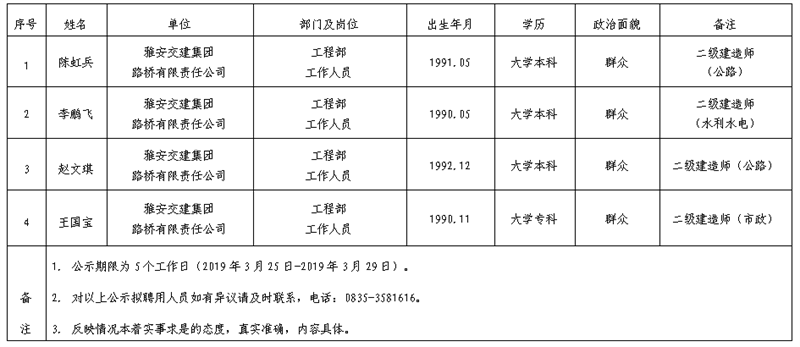 w66利来国际集团子公司拟聘用人员公示(路桥公司)