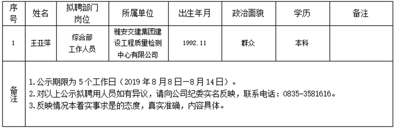 w66利来国际集团子公司拟聘用人员公示(工程质量检测中心)