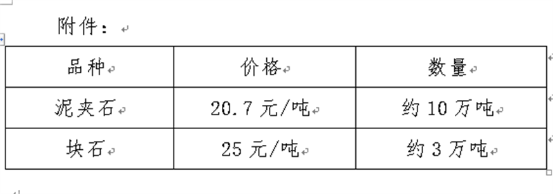 关于w66利来国际集团丹石建材有限公司定价出售弃土场泥夹石和块石的公示