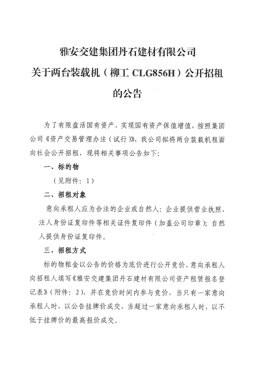 w66利来国际集团丹石建材有限公司关于2台装载机公开招租的公告附件